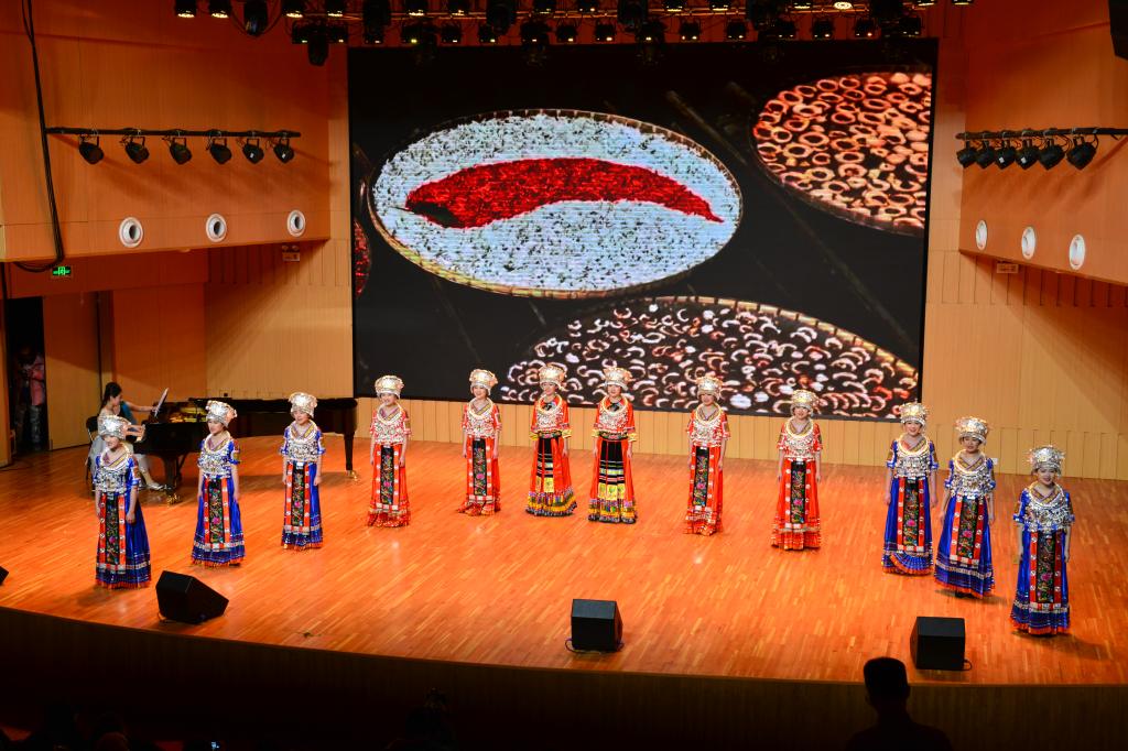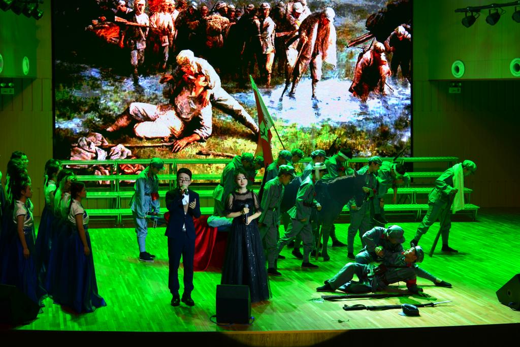 演出随着张艺峰老师刚劲有力的指挥手势正式开始,一曲合奏《金蛇狂舞》将浓厚的中国元素和古典西方交响有机融合,不仅使观众享受到纯正的中国风情,更是体味了一番优雅的西洋音乐。台州市二胡名家张觉平和扬琴伴奏詹酥酥联袂带来的《一枝花》将中国的传统文化艺术演绎的淋漓尽致,博得现场观众的阵阵掌声。男生表演唱《骏马奔驰保边疆》欢快高亢,庄重豪迈,仿佛要将观众的心都带到那广阔的大草原上去,教人流连忘返。唢呐独奏《百鸟朝凤》与双排键独奏《春节序曲》一静一动,传统与流行的对比,令人印象深刻。每一个音符的跳动都让现场观众尽情徜徉于音乐的海洋中。乐舞《不忘初心》雄壮豪迈,致敬红军长征精神,奏响新时代砥砺前行的乐章。音乐会在这荡气回肠的歌伴舞中完美落幕。