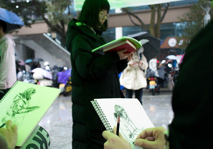 当天中午,青年志愿者们利用休息时间在椒江校区食堂门口开展“你型我速”免费自由速写写生活动。他们给来往同学进行快速的人物速写,认真专注的描摹每一副作品,并将画完的速写作品赠送于所画的同学。这次活动有效地将课堂教学和课外实践活动结合起来,让同学们贴近生活,深入生活,促进了美术学专业与其他专业员工之间的交流,充分展示了艺术学子风采。