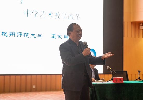 论坛上,杭师大王家祥,著名女高音歌唱家叶继红,浙江省特级教师章献明、沈永政、徐军、吴瑶香、刘中瑛等专家名师,先后从中学艺术教师核心素养培育、中学艺术教学改革、艺术教育时代新思潮、艺术教育的现状与出路、艺术教育体系建设等角度发表主题演讲,并现场师生积极进行互动交流,分享交流音乐、美术教育领域不同的观点与看法,碰撞思想的火花,现场气氛热烈。