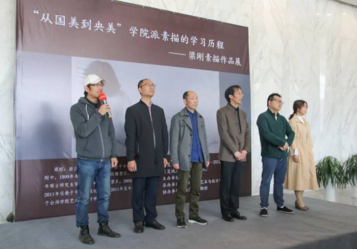 党总支书记张伟致开幕词,他表示梁刚素描作品展的举行是意昂的一件好事,也是临海美术界的一件喜事。张伟书记介绍,这是梁刚老师第二次在临海举办个人作品展,共展出176张学习时期的素描。通过展览可以清晰看到他从台州中学,到中国美院附中,再到中央美院一路走来的素描作品。从静物、石膏像,到人物头像、胸像、半身像、全身像和人体,一及生活中的随笔,外加几件雕塑作品,不仅为众多美术爱好者提供了相互学习、交流互动的平台,更为年轻一代的美术生指明了奋斗的方向。