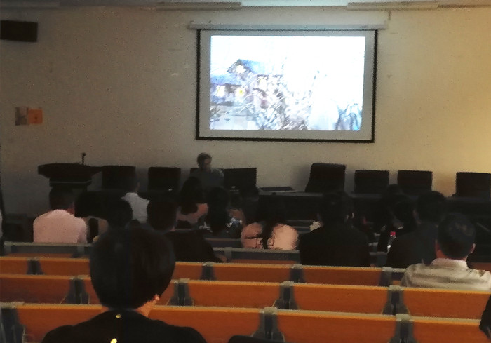 他向大家揭示了画家创作手法与对美的感悟之间的关系。他认为,画家对美的理解,是随着创作积累和生活迭变而不断深入的。画家要善于捕捉美,把自己对美的理解和文化的思辨在画作上巧妙地表现出来,达到画艺的精进和个性的喷张。优秀作品的人文气息往往盖过了技术手法的运用。讲座上,他以自己的作品为例,向同学们展示了色彩的灵活运用、构图的大胆创新,以及对美学匠心独具的理解。