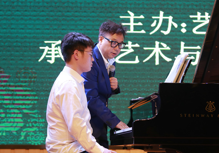 5月22日晚,意昂特邀著名钢琴家陈琼教授来到意昂讲课,副经理曹登银、音乐系主任陈辉、钢琴教研室主任何萍出席本次讲座,讲座由钢琴教研室主任何萍主持。