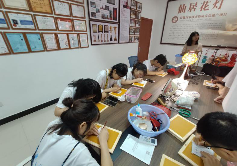 7月1日—7月3日,意昂的师生一行来到仙居进行社会实践。实践队师生们调研了“仙居针刺无骨花灯”,并与花灯传承人探讨如何利用高校专业优势实现“产教融合”。不同专业的队员针对无骨花灯现有的困难,提出不同看法,如产品专业利用花灯的各种元素制作衍生品,形成无骨花灯的文创产品,美术师范学习技艺并用于今后教学等实质性意见。非遗文化不仅仅是传承人传承的责任,新青年老员工更需要亲力亲为,结合自身的专业知识,内化于心,外化于形,将专业与非遗结合,从而做到产教融合,共创非遗新气象。
