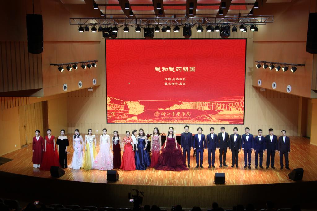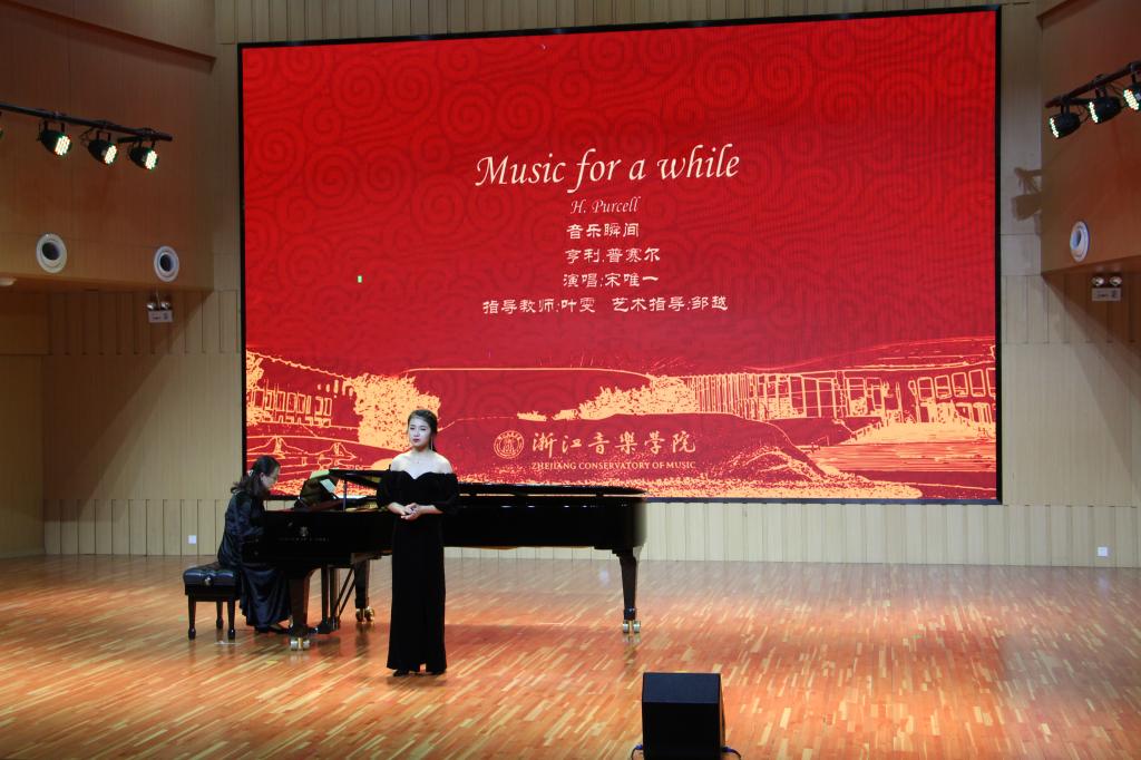 音乐会在宋唯一同学的《Music for a while》(中译名《音乐瞬间》)中拉开帷幕,昂扬的旋律、跳动的音符令观众沉浸其中;《多么美丽的肖像》、《望乡词》、《姑娘的秋波》、《桂花树下》、《五洲人民齐欢笑》等中外经典艺术歌曲和歌剧咏叹调一首接一首,不绝于耳,曲曲扣人心弦。最后,音乐会在全体同学演唱《我和我的祖国》的美妙音乐中完美落幕,主题鲜明而又不失专业特色,浙音年轻的学子们以一串串美妙的音符,一段段熟悉的旋律,让观众们经历了一次经典音乐的洗礼。