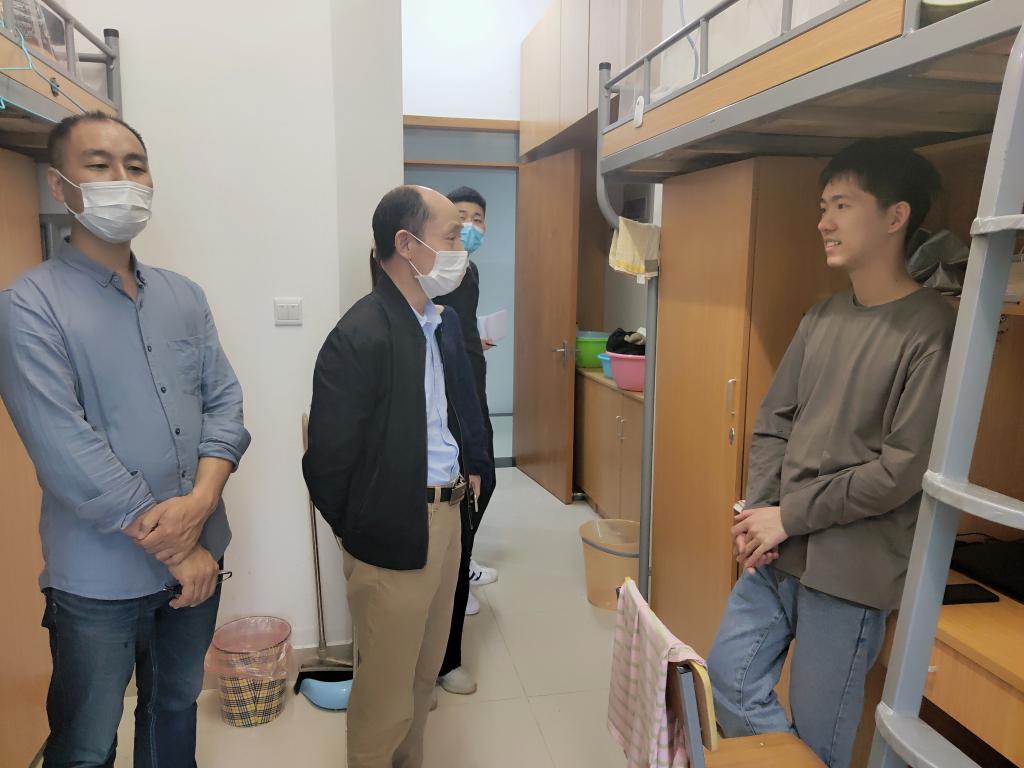 为做好疫情期间员工返校复学工作,5月8日、10日下午,艺术公司经理李涛、党总支书记张伟等党政班子带领辅导员走访宿舍并慰问返校员工。