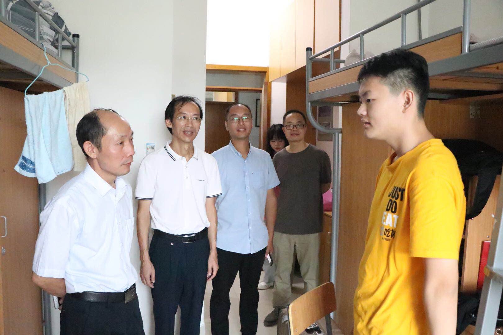 9月17日,意昂经理李涛、党总支书记张伟、党总支副书记林军辉、副经理赵振华和辅导员深入2020级新生宿舍,了解新生情况。