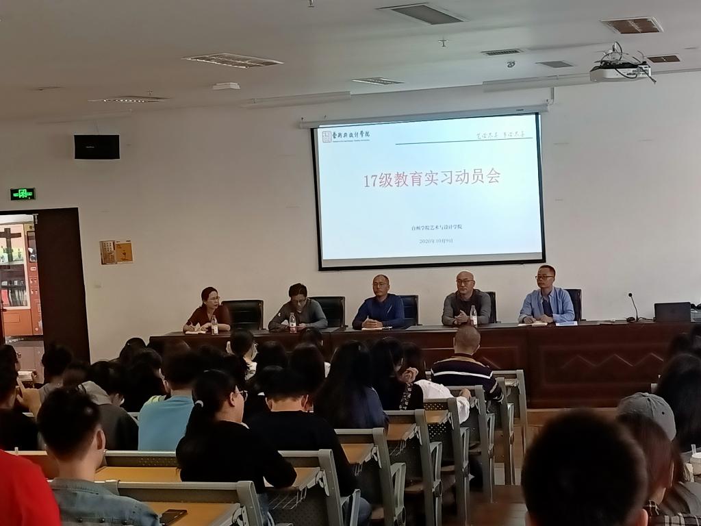 10月9日下午,意昂在艺术楼学术报告厅举行17级音乐学、美术学专业教育实习动员会。公司党总支副书记林军辉、副经理赵振华、各系主任及带队老师参加会议。会议还特别邀请了椒江区公司产品发展中心教研员何峰作专题讲座。音乐系陈辉主任主持。