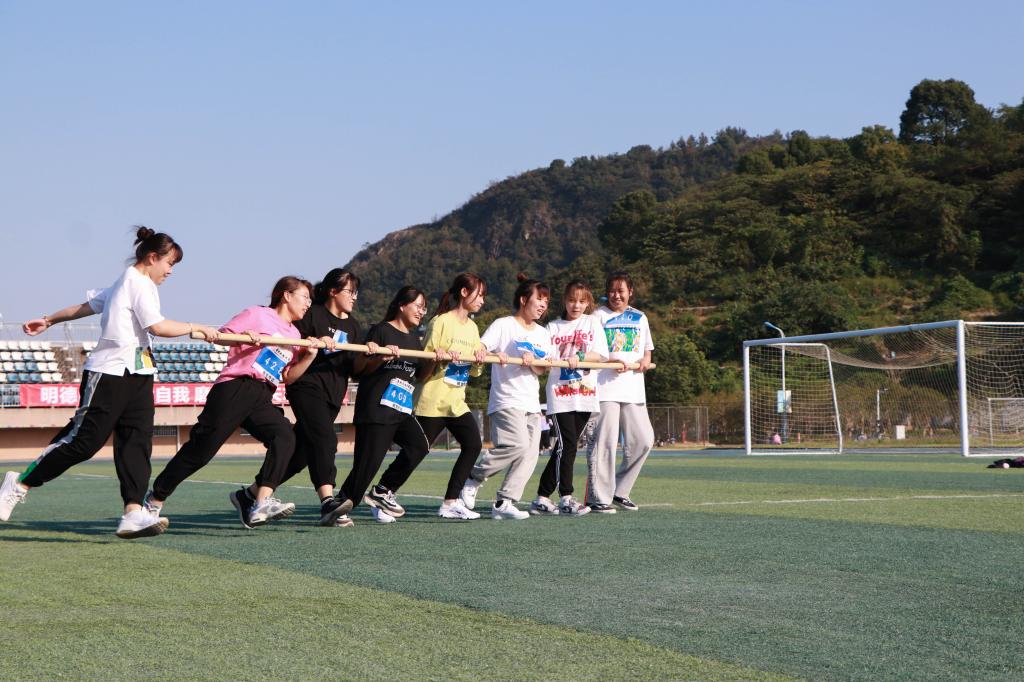 径赛场上,百米赛跑的运动员们咬紧牙关、迈开步伐,伴随着观众们的阵阵加油欢呼声,运动员们奋力冲向目标。4x100接力和趣味运动旋风跑的成员们将拼搏的信念凝聚在手中紧握的木棒上,这一次,他们代表的不只是自己,更是为了集体的荣誉。田赛场也是精彩纷呈。跳绳、跳远、三级跳的比赛中,健儿们面对目标跨出坚定的步伐,跃出完美的抛物线。