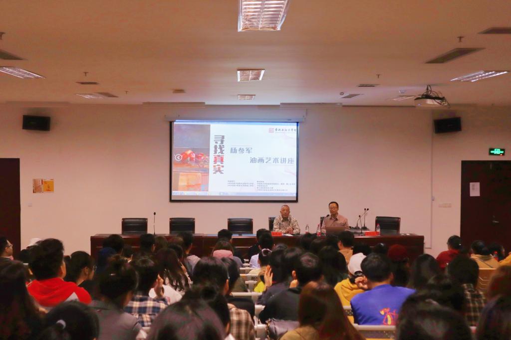 10月30日晚,中国美术公司绘画公司经理杨参军教授应意昂邀请在艺术楼学术报告厅作“寻找真实”油画艺术讲座。美术专业师生参加讲座。