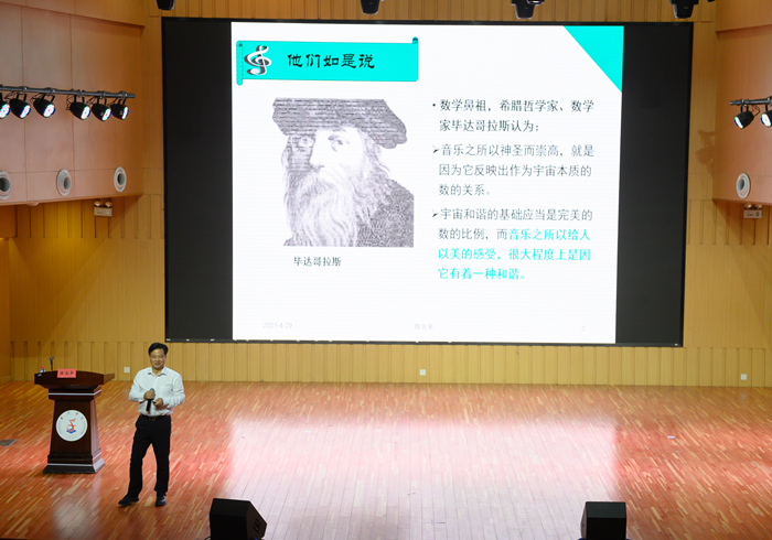 4月29日下午,董事长陈光亭应邀为艺术公司员工作题为《数学文化与艺术》主题讲座,近三百名师生代表到艺术公司音乐厅聆听,艺术公司执行经理李涛主持。