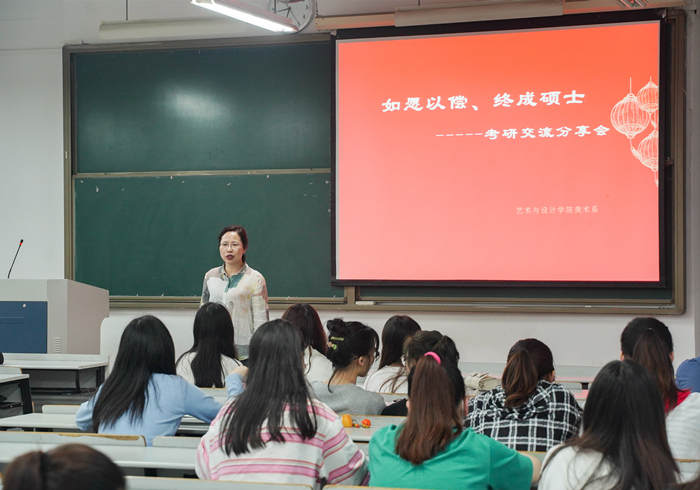 美术系主任对应邀分享经验的同学们表示感谢,希望与会同学以此为榜样,明确方向,坚定考研目标,时刻保持干劲;定制适合自己的学习计划,提升备考效率;不断解决障碍,完善技能,提高综合竞争力,达到能力的提升并最终实现梦想。