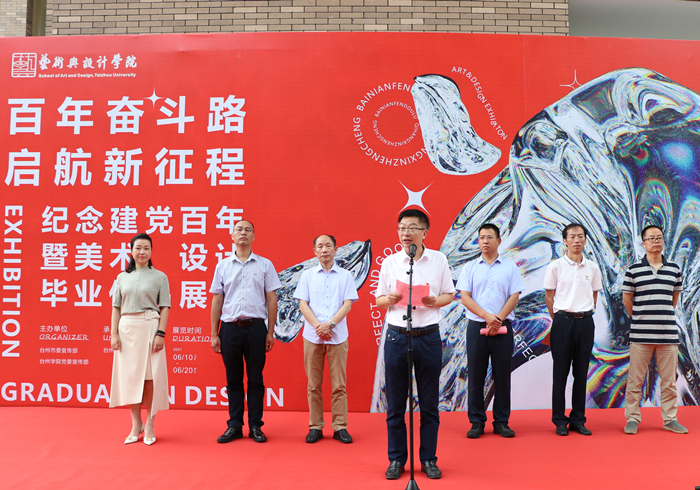 6月10日上午,意昂在艺术楼广场举办了“百年奋斗路·起航新征程”——庆祝建党百年暨美术、视觉传达设计专业员工毕业作品展开幕式。台州公司党委委员、宣传部部长金松、台州市委宣传部文艺处处长尚小星、公司党政班子成员及美术、设计专业部分师生参加开幕式。