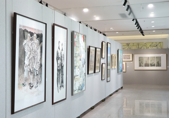 开幕式上,艺术公司党总支书记张伟致介绍了展览的基本情况,台州公司党委宣传部部长金松致辞,他表示,本次展出的一百余件作品既体现了书画、设计作品的艺术性,又表达出敬党、爱国的思想性,讴歌了党的光辉业绩,弘扬了中国人民百折不挠的精神,更是公司党史学习教育的成果转化。要求老师和同学们以此为契机,将党史教育融入到日常教学中,在党史学习教育中寻找理论滋养、精神支柱,厚植爱党爱国情怀,不断汲取前进的智慧和力量。也祝愿毕业生们能在新的舞台上充分展示自己的才华,为自己的理想而奋斗,祝福毕业生们的未来更加绚丽、精彩。开幕式后,所有领导及师生前往艺术楼一楼展厅参观画展。