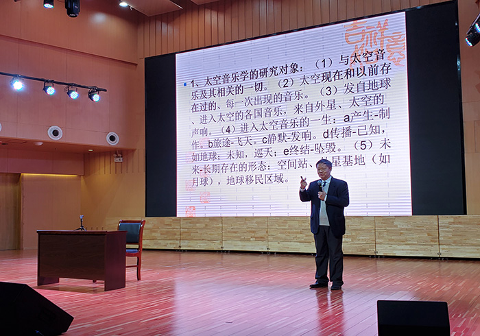 郑教授从浩瀚的太空出发,深入音乐的太空存在、中国音乐太空存在历程、中国音乐太空存在的三种空间、中国音乐太空存在的四种方式进行展开讨论。以纵向和横向结合的立体思维进行事实呈现、引经据典讲述古今故事传说、细数《东方红》、《流水》等系列中国航天与音乐详细案例,一一阐述音乐在太空中的碰撞与融合。