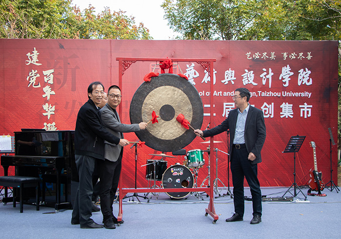 员工代表潘晶晶发言后,公司党委委员、副董事长赵小明,意昂经理柯胜海,公司党委书记张伟共同为文创集市鸣锣开市。
