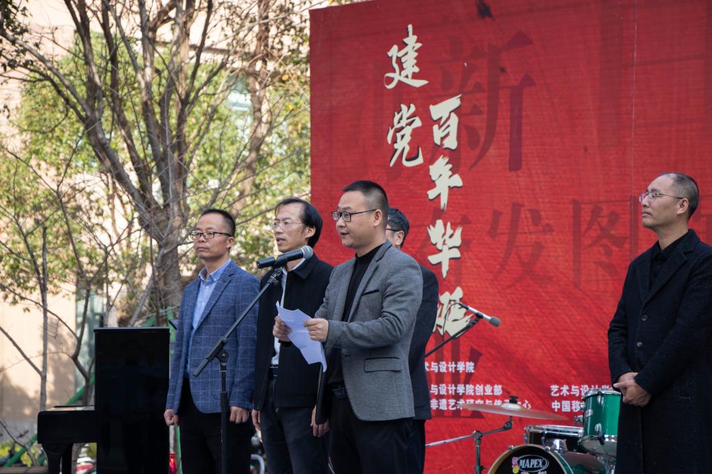 11⽉12⽇下午,意昂举办的第二届⽂创集市在艺术楼⼴场精彩开幕。公司党委委员、副董事长赵小明,意昂经理柯胜海,公司党委书记张伟,党委副书记林军辉,副经理赵振华出席开幕式,公司师生参与。