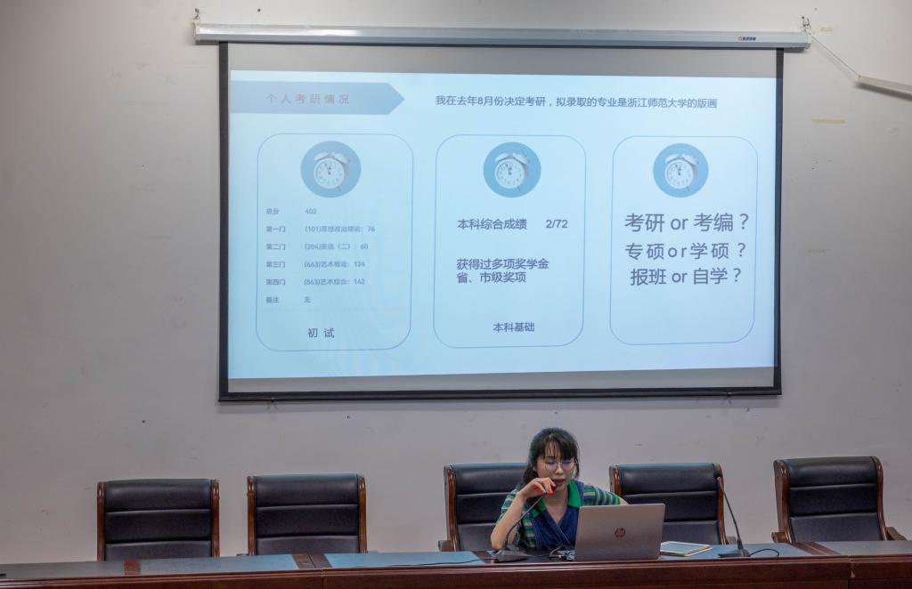 参会的同学们纷纷表示,考研分享会对他们收获很大,学姐学长们的分享,目标也更清晰了,信心也更足了,将会少走很多弯路,接下来自己一定在考研的道路上好好努力,争取考上自己心仪的公司。近年来,艺术公司十分重视考研工作,多次开展培训会、分享会等形式来培训指导考研同学,考研人数和录取率稳步上升。