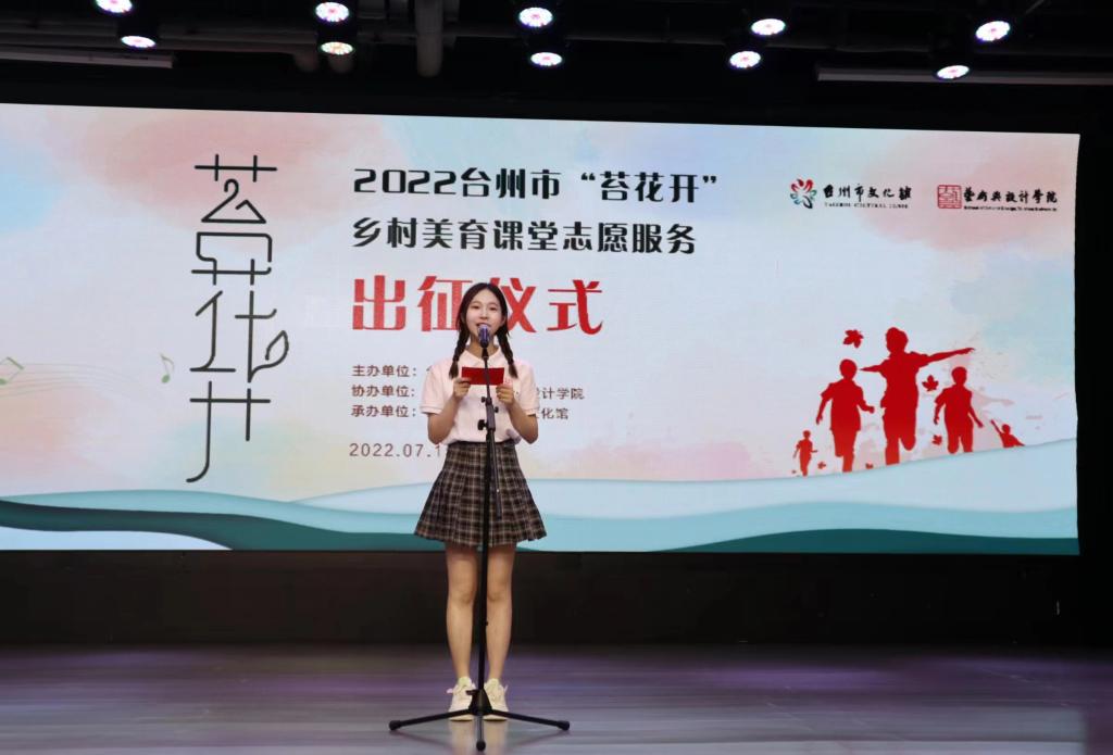 7月15日上午,由意昂与台州市文化馆联合举办的“苔花开”乡村美育教育社会实践活动出征仪式在台州市文化馆隆重举行。台州市文化馆副馆长孔祥波、意昂副经理叶高峰、党委委员徐培林出席,公司相关院系教师、各县市区项目负责人和全体实践队队员参加。