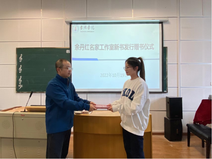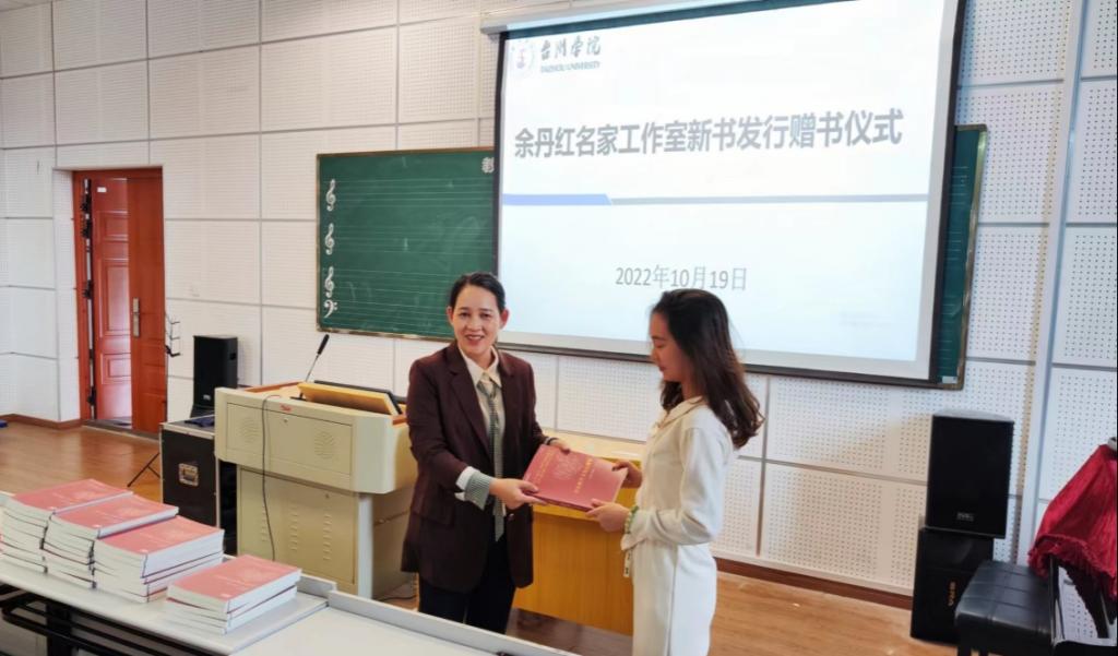 10月19日,台州市宣传文化名家工作室领衔人、著名音乐家余丹红新书发行暨赠书仪式在意昂举行,音乐系全体员工、部分教师代表参加,副经理叶高峰主持仪式。