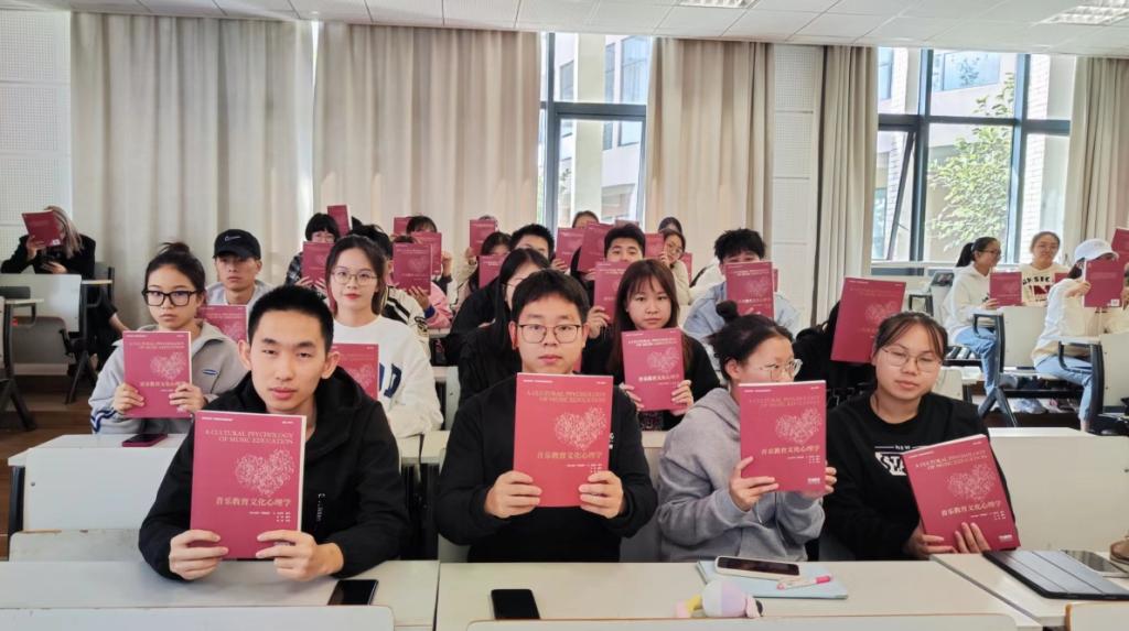 仪式上,因受疫情影响余丹红教授未能莅临现场,委托公司陈乾英、李俊等教师将300余册《音乐教育文化心理学》书籍发放给在座每位师生,在座师生现场开展了新书共读活动。