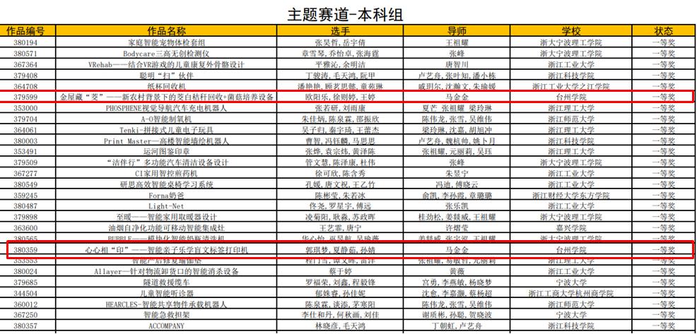 从初赛到决赛,从草图到模型的制作,从方案完善到现场答辩,参数选手团结协作、全力以赴展,现出良好的精神风貌。最终,由马金金老师指导,欧阳乐、王婷、徐则婷的作品《金屋藏茭——新农村背景下的茭白秸秆回收+菌菇培养设备》,郭琪梦、夏静茹、孙婧的作品《心心相“印”——智能亲子乐学盲文标签打印机》分别获得一等奖,一等奖获奖率仅为5%。