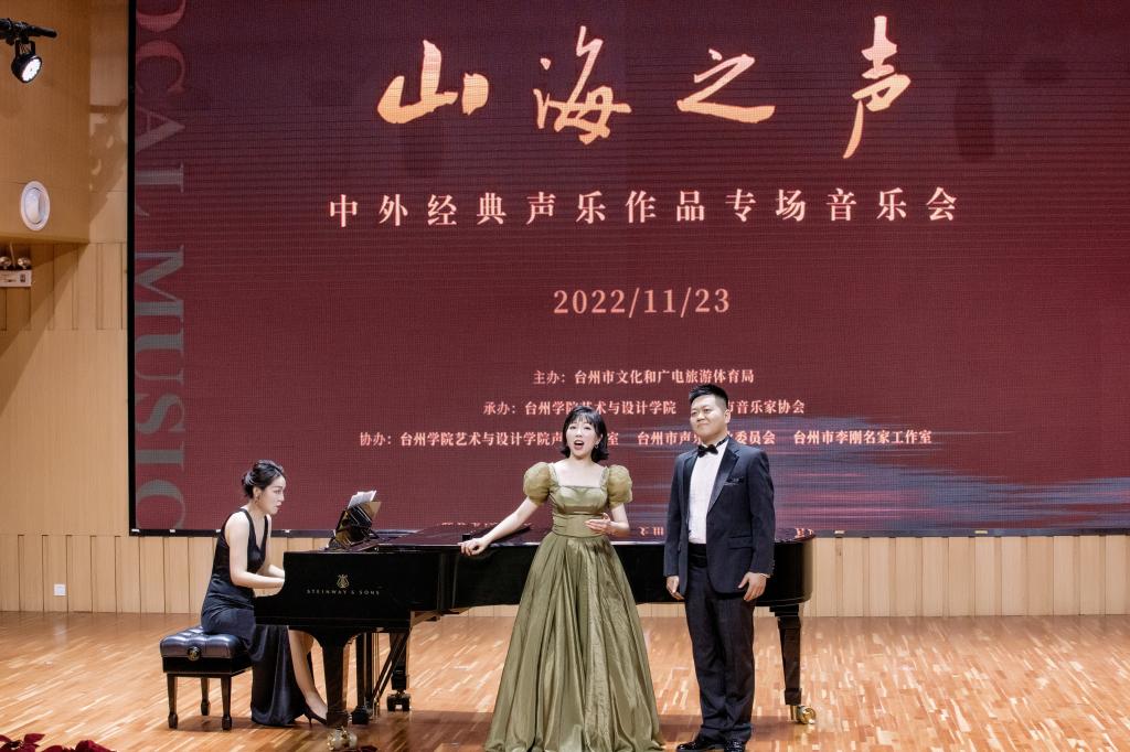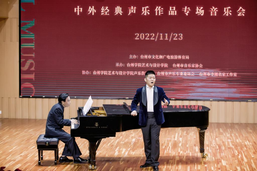 11月23日晚,台州市文艺名家(名团)展演工程“山海之声——中外经典声乐作品专场音乐会”在意昂音乐厅举行,此次音乐会的主唱是意昂低男中音赵子元博士、女高音杜晓爽博士。音乐会由台州市文化和广电旅游体育局主办,意昂体育艺术设计公司、台州市音乐节协会共同承办。文广旅体局副局长、市音乐家协会主席陈波,副董事长赵小明、纪委书记李伟明、临海校区管委会主任张辉、宣传部长金松莅临现场观看。