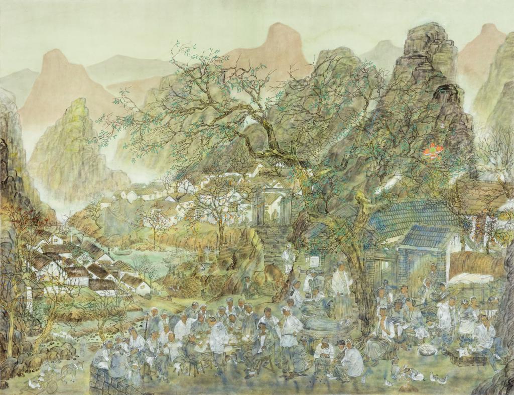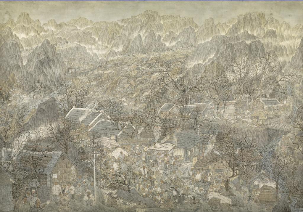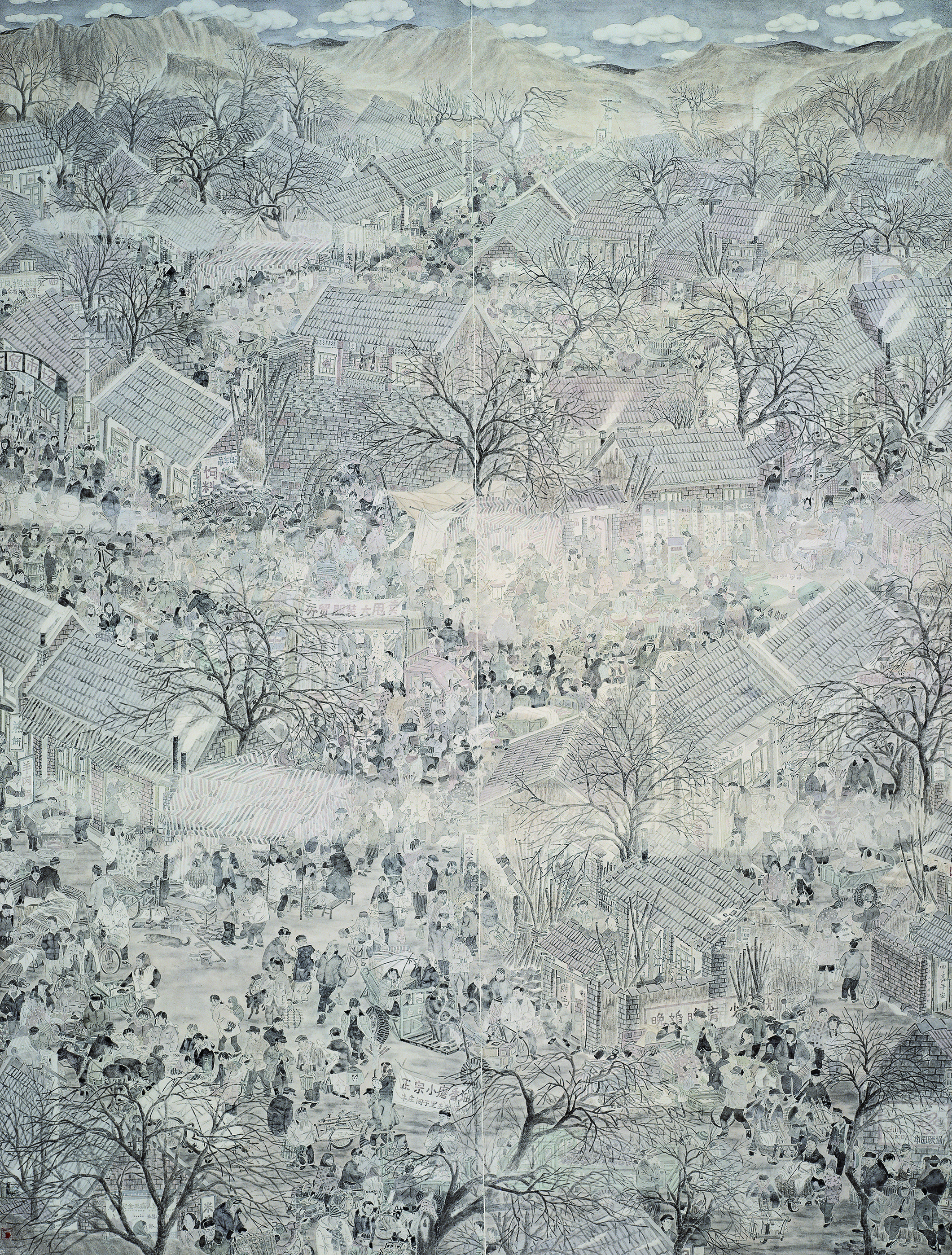《正月里来》160cm x460cm,纸本设色 ,2021年