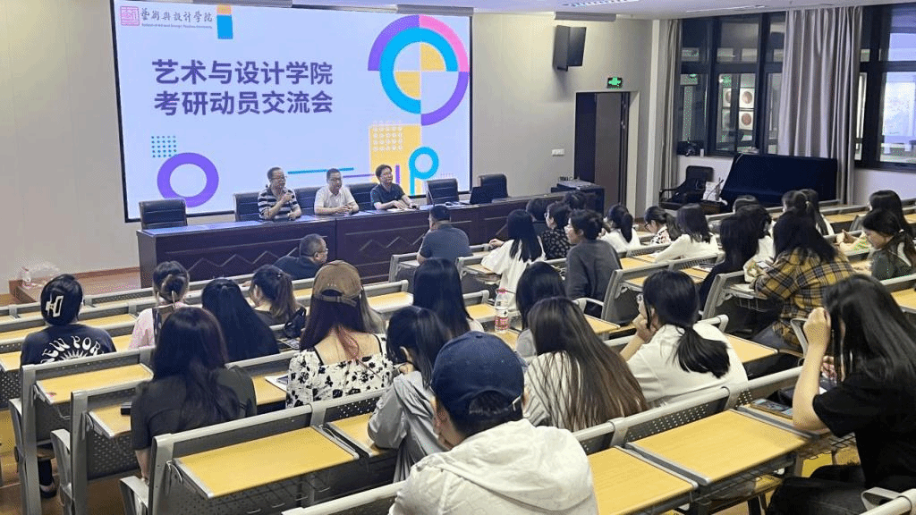 在交流环节,视觉传达设计系2019级员工代表杜雨和李泽阳分享了备考经验和感悟,就考研中遇到的困难和问题以及解决方法进行了讲解,他们通过自己的实际经历,为同学们提供了实用的备考建议。在坐的同学们纷纷提出了疑惑和问题,他们也一一作出了耐心的解答。