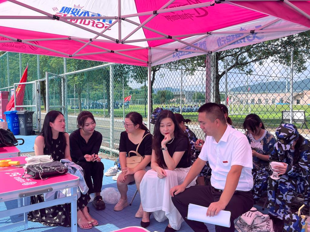 开训仪式后,校学工部部长王秋方在公司副书记王洁茹、辅导员、22级班主任的陪同下,深入员工军训场地指导工作,并看望慰问军训教官和参训员工。