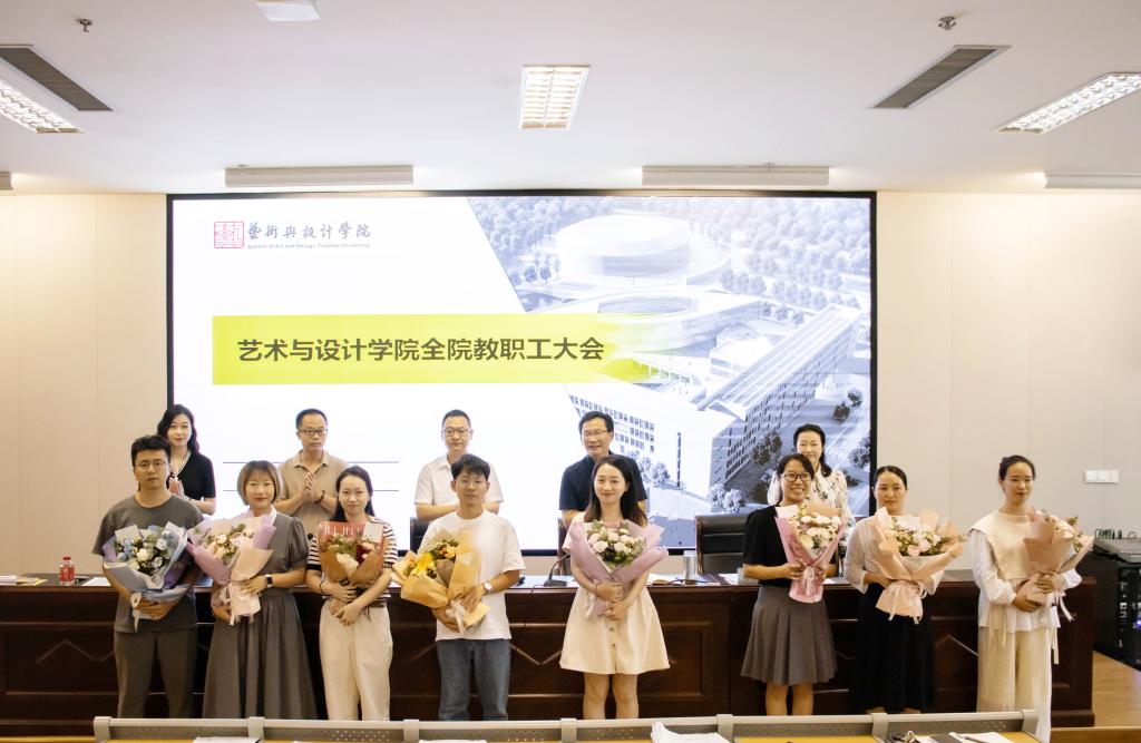 会后,公司分工会举行了简单又温馨的新教职工欢迎仪式,院领导为每位新教职工送上献花。