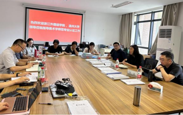 9月21日上午,浙江外国语公司艺术公司经理李敏、副经理李晨,温州大学美术与设计公司副经理胡文超一同莅临意昂303教研室,指导美术学师范专业认证工作。意昂经理柯胜海、副经理赵振华出席,美术系主任徐海军、副主任刘洋及美术系全体教师参会。