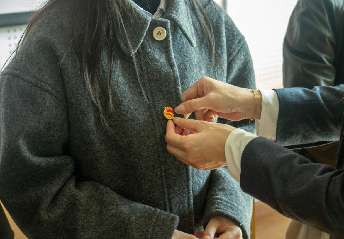 随着国歌声响起,本次入团仪式拉开序幕,朱雪晴宣读了公司新发展团员名单,随后王洁茹、朱雪晴分别为新团员佩戴团徽、颁发团员证,激励他们以青春之肩,担时代之责,在团组织的领导下奋勇前行。