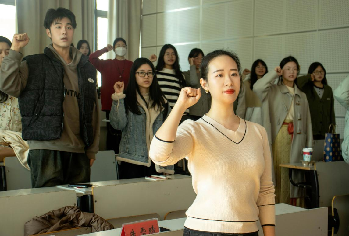 王洁茹向新团员表示热烈祝贺,并提出四点要求:一是以学铸魂,坚定理想信念;二是严以律己,以一名共青团员的标准来严格要求自己;三是勤奋好学,为成为更优秀的自己蓄力;四是有奉献精神,树立关心他人、服务他人的意识,为共产主义事业奉献自己的青年力量。她同时勉励新团员们肩负起时代赋予的使命,做“心中有梦,眼中有光,脚下有路”的新青年。