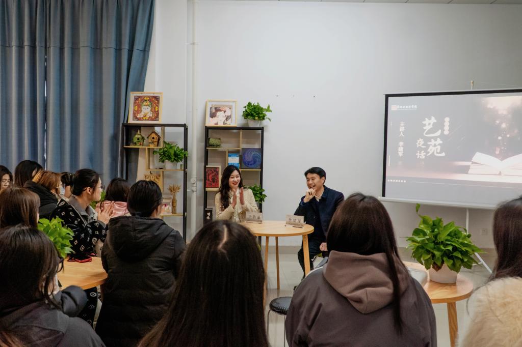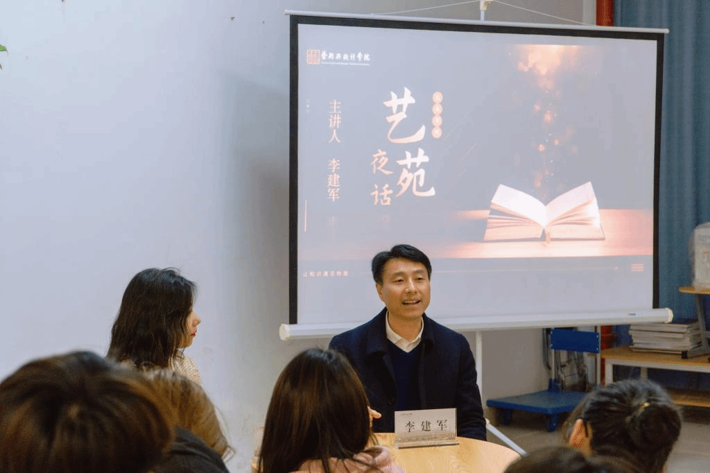 当日晚上,李建军走进意昂“艺苑夜话”活动,在公寓“星火驿站”与同学们面对面漫谈“争做新时代三致英才”,进一步深化“宿舍思政”第一课。会上,他结合艺术公司专业实际,围绕“勤以致知、笃以致用、弘以致远”三个命题,述说艺术公司学子应当如何成为一名德才兼备的老员工。“勤以致知”告诫同学们勤学、勤思,用广泛的阅读来涵养自身、培养书卷气,让书卷气融入到绘画、设计、音乐的创作当中。“笃以致用”强调由技入道,李建军指出,文艺创作需要做到知行合一,把理论和实践相结合,通过把握创作规律,把匠气提升为艺术气。谈及“弘以致远”,他要求同学们胸怀诗和远方,立大志,明大德,努力做堪当民族复兴大任的时代新人,让青春在奋斗中绽放光彩。