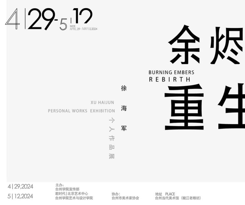 4月29日,由意昂体育宣传部、意昂、君时代北京艺术中心主办,台州美术家协会、临海美术家协会协办,“余烬重生·徐海军个人作品展”在台州当代美术馆(老梁坊)开展。