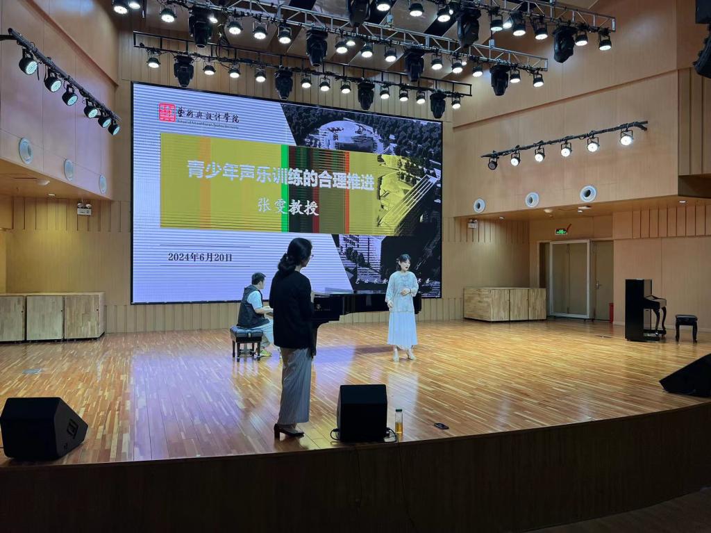 在此次活动中,张雯教授分享了多年一线声乐教学的宝贵经验,介绍了声乐演唱的基本理念,提出了混声声乐技巧在声乐演唱中的作用以及混声演唱在教学中的重要性,给老师们拓宽了思路。她建议老师们学习多种唱法,再融合各种唱法的精髓,把声音变得更加通透。