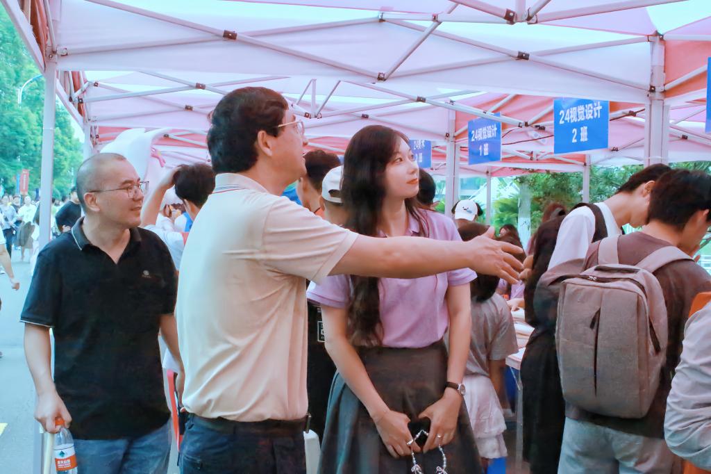 上午时分,公司党委书记朱坚、相关职能部门领导莅临艺术公司迎新点,了解迎新工作的组织安排和进展情况,高度赞扬了现场工作人员及志愿者的辛勤付出。他们不仅带来了满满的关怀,还附赠了“未来秘籍”。