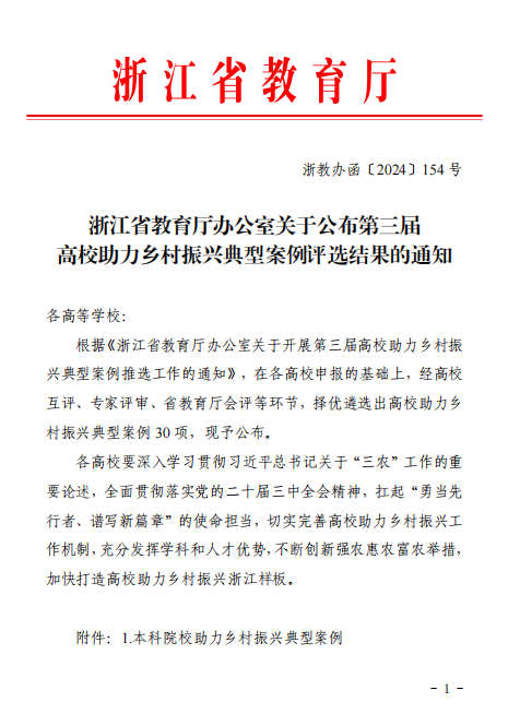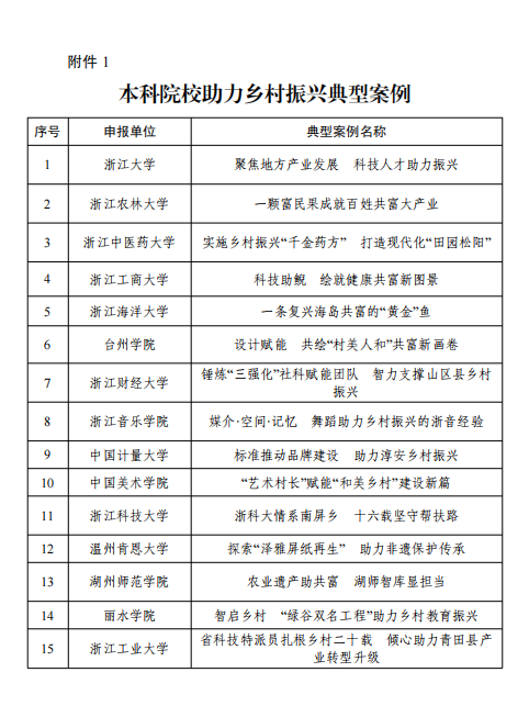 浙江省第三届“高校助力乡村振兴典型案例”入选名单