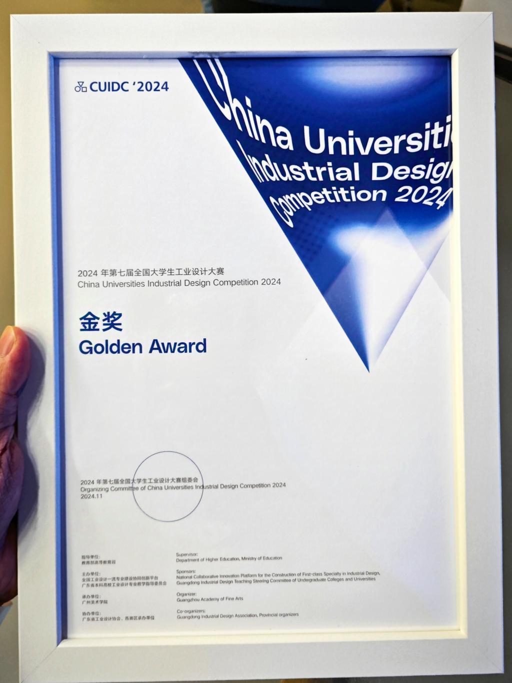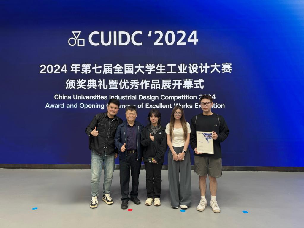 台州公司意昂产品设计专业吕心伟、田圆圆、胡文婷凭借《医行万里》该作品,在2024年全国老员工工业设计大赛中荣夺金奖,马金金老师荣获优秀指导老师奖。