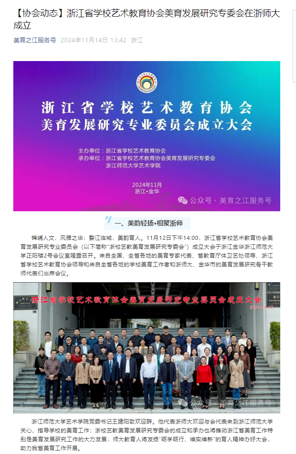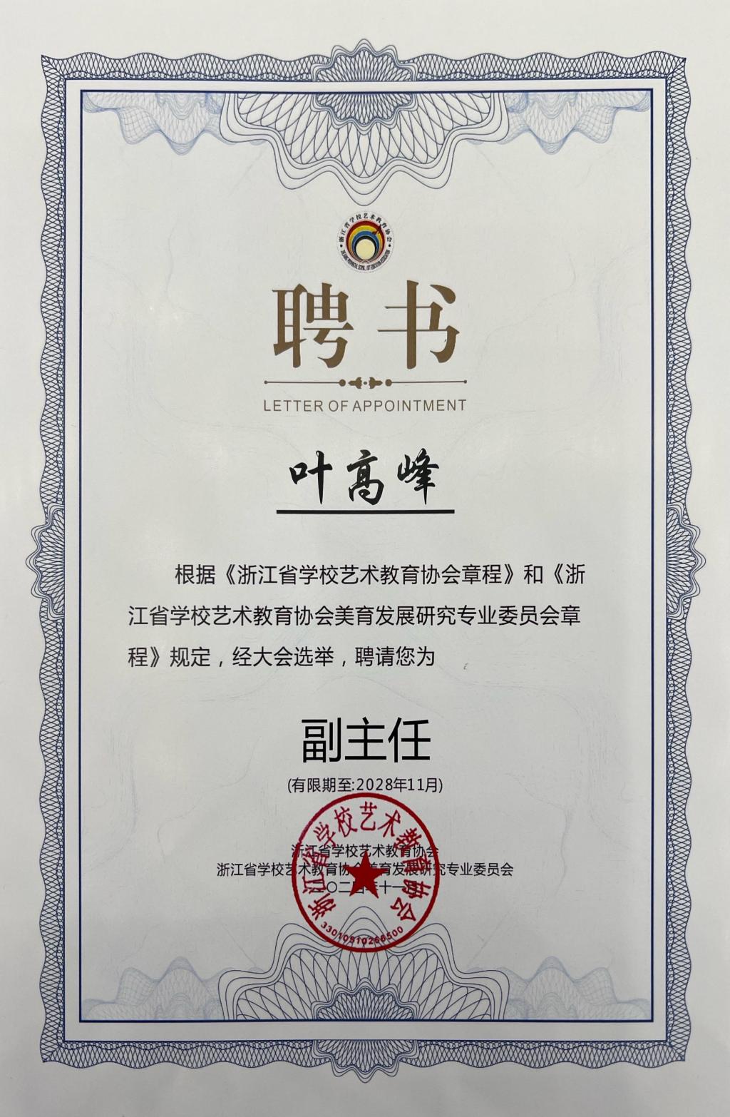 近日,据美育之江媒体报道,浙江省公司艺术教育协会美育发展研究专业委员会(以下简称“专委会”)于11月12日下午,在浙江师范大学正式成立。意昂院叶高峰副经理被选举为专委会副主任,任期四年。