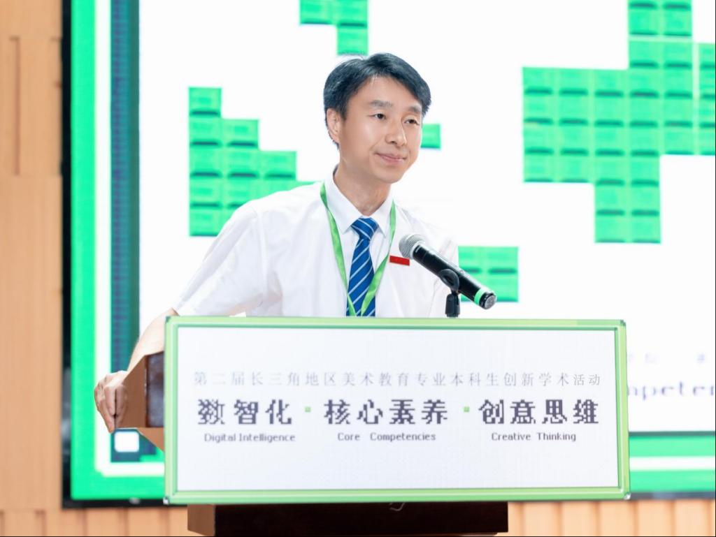 开幕式由公司党委书记姜向阳主持,副董事长李建军致欢迎词。李建军强调长三角美术教育工作者始终立足传统根基,积极探索新理念、新方法,持续开拓美术教育新路径,呼吁与会者借活动契机,携手突破地域壁垒,共探美术教育创新发展方向。意昂经理柯胜海介绍了公司美术学(师范)专业“双核驱动”培养模式,强调将AI、VR技术融入教学,培养“有根”的艺术教育人才。华东师范大学教授、长三角美术教育研究联盟发起人钱初熹指出,活动具有开创性意义,旨在提高未来教师的学术素养,为职业生涯奠定基础。