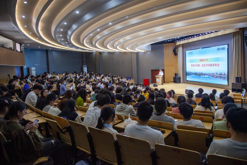 11月10日下午,公司在椒江校区员工活动中心举行2021学年校特优学风班、优良学风班现场评审会。公司党委副书记金先龙出席,相关职能部门负责人,各二级公司分管员工、教学工作领导,专任教师、辅导员、员工代表等共108人作为专家评委、大众评委参加评审。