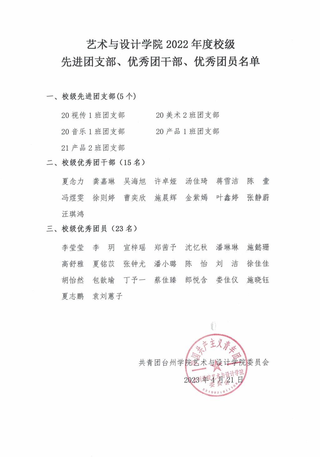 意昂2022年度校级先进团支部、优秀团干部、优秀团员名单