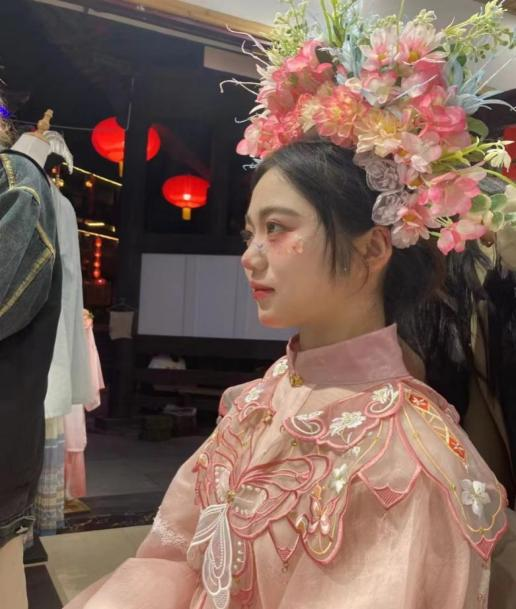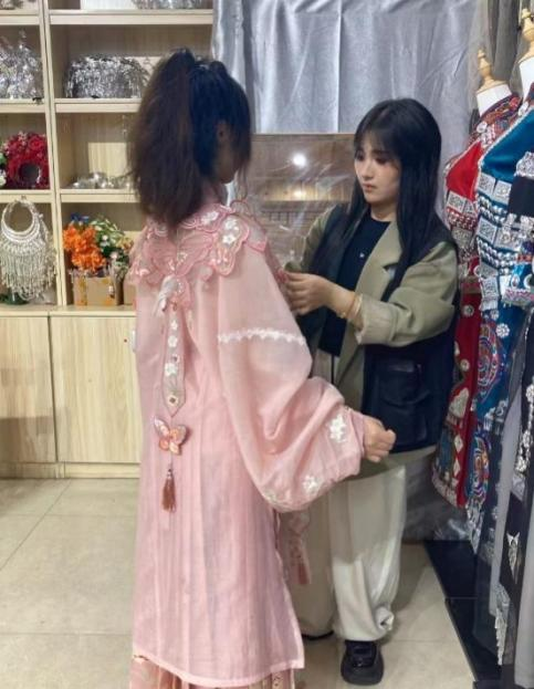 在一家传统服饰店内,服饰店的主人热情地为介绍了簪花的种类、制作工艺以及穿戴技巧,实践队成员亲身体验了簪花服饰的穿戴过程,深刻体会到传统文化在现代社会中的生命力与活力,队员们纷纷用镜头记录下这难忘的瞬间,定格了对中国非遗传统文化独特魅力的精彩瞬间。